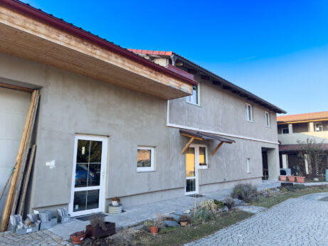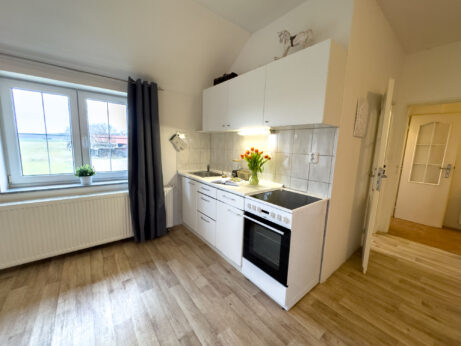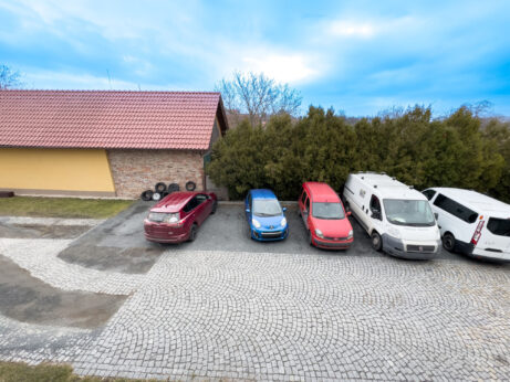 Byt je pronajímán s kuchyňskou linkou včetně elektrického sporáku, v obývacím pokoji je k využití šatní skříň. Díky praktické dispozici bytu se v hlavní obytné místnosti pohodlně umístí nejen větší sedací souprava, ale i větší jídelní stůl, nebo je zde možnost pracovního koutu. Vytápění pro dům zajišťuje tepelné čerpadlo. Na podlahách je PVC. Parkovat 1 auto lze přímo na pozemku u domu, vjezd je opatřen elektricky otevíranými vraty.