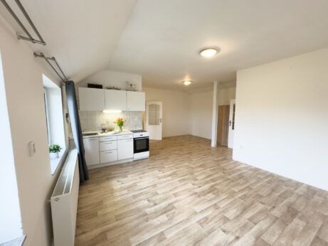 Dispozice bytu: vstupní chodba, obývací pokoj s kuchyňským koutem, ložnice, koupelna se sprchovým koutem, toaleta je zvlášť. V domě je k bytu také k dispozici sklepní kóje o velikosti 2 m2.