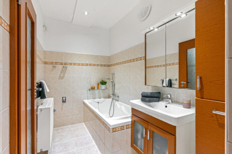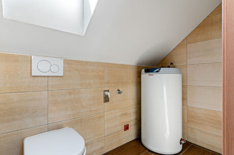 Topení je ústřední, na verandě a v horní koupelně je podlahové vytápění. Dům je napojen na veřejný vodovod a kanalizaci a má vlastní studnu na zalévání zahrady. Je tu alarm napojený na pult centrální ochrany a ohledně internetu Vás potěší, že je tu zavedená optika.