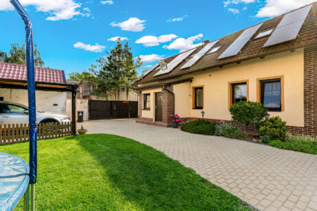 Rodinný dům s fotovoltaikou, tepelným čerpadlem, velkou trojgaráží a pergolou